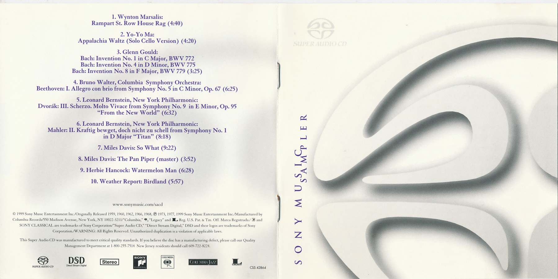 SACD Promotional · CSS-42864 · USA · © 1999 Sony Corporation/Columbia/Legacy/Sony Classical SACD Promotional · CSS-42864 · USA · © 1999 Sony Corporation/Columbia/Legacy/Sony Classical SACD Promotional · CSS-42864 · USA · © 1999 Sony Corporation/Columbia/Legacy/Sony Classical SACD Promotional · CSS-42864 · USA · © 1999 Sony Corporation/Columbia/Legacy/Sony Classical SACD Promotional · CSS-42864 · USA · © 1999 Sony Corporation/Columbia/Legacy/Sony Classical SACD Promotional · CSS-42864 · USA · © 1999 Sony Corporation/Columbia/Legacy/Sony Classical SACD Promotional · CSS-42864 · USA · © 1999 Sony Corporation/Columbia/Legacy/Sony Classical SACD Promotional · CSS-42864 · USA · © 1999 Sony Corporation/Columbia/Legacy/Sony Classical |