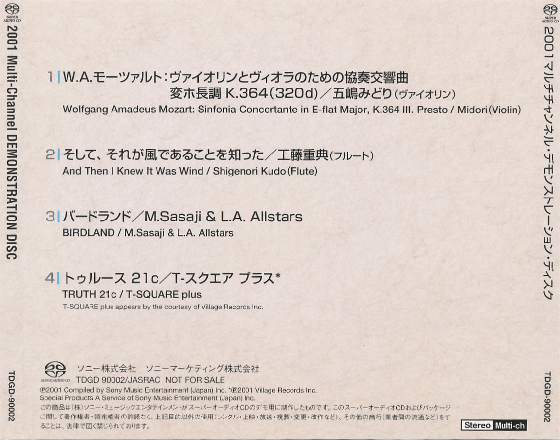 | SACD 2001 Multi-Channel Demonstration Disc [TDGD-90002 • JP • 2001 • Demo] |