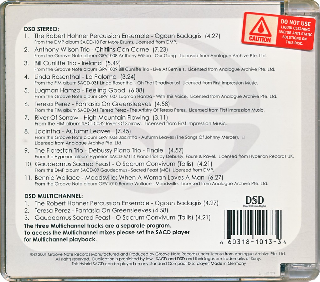 The SACD Stereo and Multichannel Demonstration Disc [GRV1013-3 • DE • 2001 • Demo] |